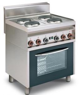 Lotus 4 soners komfyr med GN 1/1 varmluftsovn med glassdør. Mål: B 800 x D 650 x H 870 mm EL: 400 / 230-11,11 kW Se brosjyre for fullstendig informasjon.
