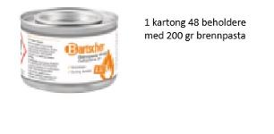 48 beholdere a 200 gram brennpasta pr kartong. Prisen er for en kartong.