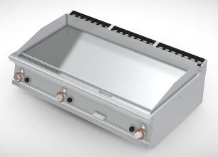 1200 flatgrill med glatt polert chrome stekeflate. Stekeflate 1160 x 510 mm fordelt på 2 soner. Midtstillt fettskuff. MÅL: 1200 x 705 x 280 mm GASS: 21 kW, mask forbruk 08 kg / time